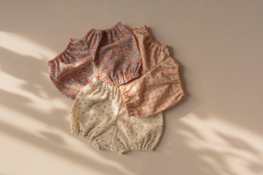 This one is probably our most popular piece. Thanks to their versatility, bloomers can be worn all year round and go with just about anything: dresses, tank tops, sweaters and shirts. Wear it in the summer with a simple sandal and in the winter with tights underneath!